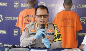 “Pelaku berikut barang bukti, ditangkap petugas di jalan raya di wilayah Kabupaten Gresik,” kata Kapolres dalam konferensi pers, Senin (04/02/2019) siang.