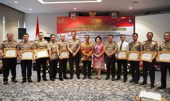 Piagam penghargaan tersebut diserahkan oleh Direktur Pelaksana Anggaran Kemenkeu, kepada Kapolres Katingan AKBP Andri Siswan Ansyah, S.I.K., S.H., pada saat acara Penyusunan dan Penyajian Laporan Keuangan Polri T.A. 2019 Unaudited, di Hotel Mercure Jalan Gatot Subroto, Jakarta Selatan, Selasa (18/02/20).