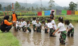 Pada kegiatan lainnya anak – anak TK milik Kodim 0725 Sragen tersebut diperkenalkan dengan tanaman padi dan cara menanamnya di sawah sambil bermain lumpur, yang kemudian dilanjutkan masuk ke sungai untuk menangkap ikan.