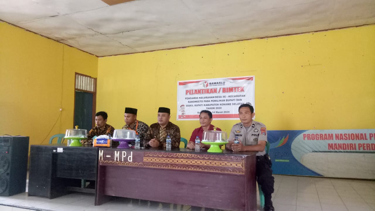 Bertempat di Balai kecamata Ranomeeto Kabupaten Konawe selatan (konsel) Aipda piet Trino Y M. Anggota polsek Ranomeeto polres kendari menghadiri pengambilan sumpah sekaligus pelantikan Panwaslu Kecamatan Ranomeeto, Sabtu (14/03/2020).