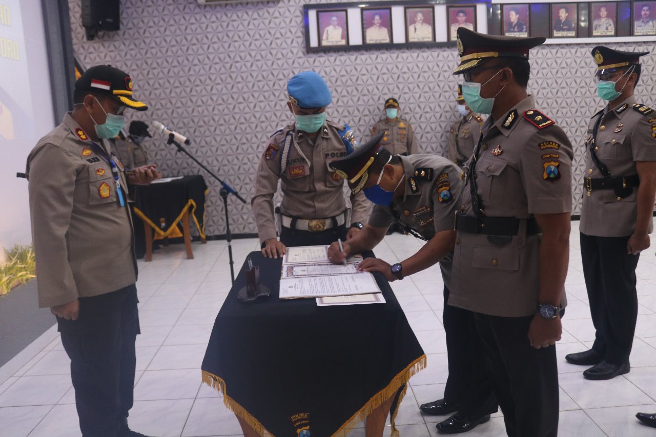 Upacara sertijab dipimpin oleh Kapolres Bojonegoro, AKBP M budi Hendrawan, SIK, MH dan diikuti para pejabat utama Polres Bojonegoro dan Ketua Bhayangkari Cabang Bojonegoro.
