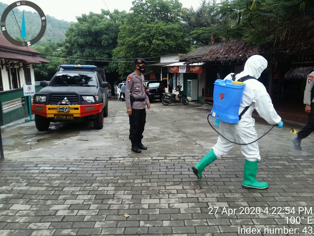 Dalam hal ini, Satbrimob Polda Banten yang masuk ke dalam gugus tugas percepatan penanganan virus Corona di Banten terus melakukan upaya preventif dengan menyemprotkan cairan disinfektan, Senin (27/04/2020).