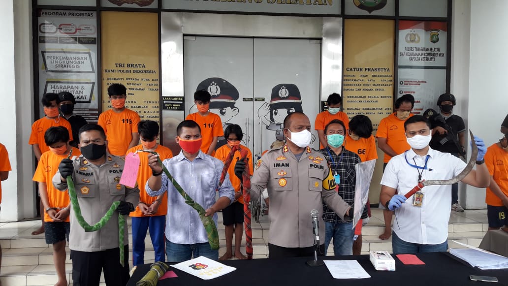 “Telah terjadi tawuran di tiga wilayah Polsek Serpong, Polsek Cisauk, Polsek Ciputat , yang dilakukan oleh warga antar kampung dengan menggunakan senjata tajam yang mengakibatkan korban luka dan 1 orang meninggal di Wilkum Polsek Ciputat dan Polsek Serpong,” Jelas Kapolres.