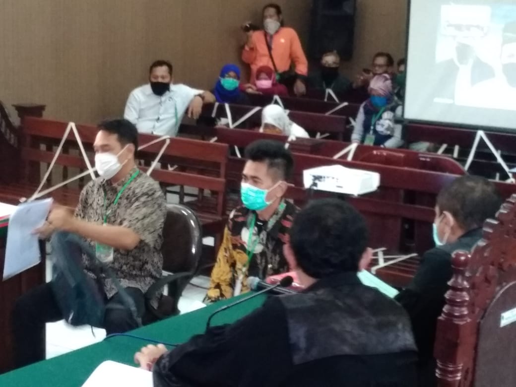 Sidang diselenggarakan secara video confrence berjalan lancar. Penasehat hukum Terdakwa Prayogo Laksono, SH, MH, CLI, CLA, CTL. dan Erick Andikha Permana ,SH menghadirkan tiga orang saksi sekaligus yakni Dr, M. Sholehudin, SH, MH, saksi Ahli dan pakar hukum Pidana dari Universitas Bhayangkara (Ubhara) Surabaya, Dr, Iwan Permadi, SH,M.Hum saksi Ahli Kenotariatan dari Universitas Brawijaya (UB) Malang, dan Andik Yulianto, MSi Saksi Ahli Bahasa dan Sastra .