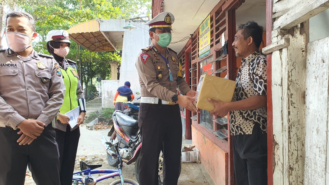 “Pada Pandemi Covid-19 ini tentu mengakibatkan beban berat bagi seluruh pihak dan ini merupakan upaya kami untuk sedikit meringankan beban tersebut, semoga bermanfaat” tambah Kasat Lantas.