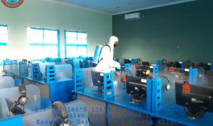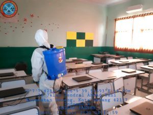 “Kegiatan penyemprotan disinfektan dilakukan pada sudut-sudut tanpa terkecuali seperti gagang pintu, pagar, halaman sekolah serta lingkungan sekitar sekolah dan benda-benda yang sering terkena sentuhan tangan juga turut diberikan penyemprotan disinfektan agar meminimalisir bermukimnya bakteri atau virus corona disease 2019 (Covid-19),” ucap Fiandar.