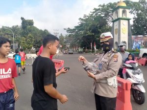 “Personil membagikan masker pada masyarakat yang datang ke Car Free Day di Alun-alun Pandeglang dan para pengunjung pantai Pasir Putih,” terang Rudy.