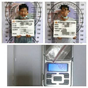 Lanjut Wahyu menjelaskan, awalnya tim Satresnarkoba Polresta Tangerang melakukan penangkapan terhadap tersangka (S) di Cikupa, Kab. Tangerang, kemudian dilakukan penggeledahan dan di temukan barang bukti berupa 1(satu) bekas bungkus rokok Clas Mild yang didalamnya berisi 1 (satu) paket plastik bening yang di dalamnya berisi kristal warna putih yang diduga narkotika jenis sabu dengan berat brutto 4,28 gram yang di simpan didalam kantong celana sebelah kanan tersangka (S). Kemudian tersangka (S) mengaku mendapatkan sabu tersebut dari tersangka (FI) yang rumahnya masih satu kampung dengan tersangka (S). Kemudian tim Satresnarkoba Polresta Tangerang melakukan pengembangan dan berhasil menangkap tersangka (FI).