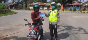 Untuk mewujudkan hal tersebut, Sat Lantas Polres Sekadau membagikan buku panduan keselamatan berlalu lintas di sekitar Jl. merdeka selatan desa Sungai Ringin, Senin (15 Februari 2021).