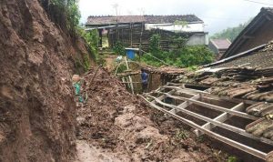 Dalam proses evakuasi tanah longsor yang menutup jalan penghubung desa,sesuai laporan ada enam rumah warga tertimpa longsoran akibat curah hujan yang sangat deras beberapa waktu.