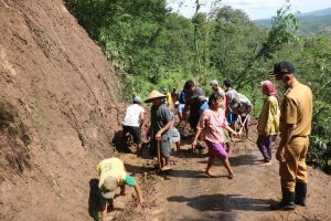 “Longsor terjadi pada, Minggu (14/2/2021) malam, sehingga, mulai pagi warga sudah bergotong royong membuka jalan,”ucapnya.