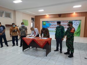 Penandatanganan antara Direktur Muhammad Yusuf, SE., SH., MH., LKBH Jepara dengan Ketua Pengadilan Negeri Jepara Danardono, SH., dengan di saksikan oleh perwakilan Forkompinda Kabupaten Jepara.