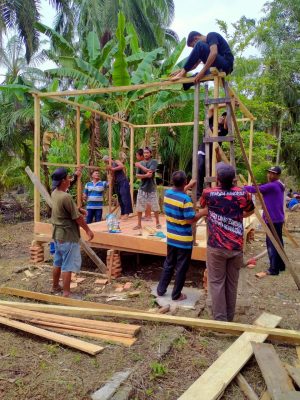 Rumah yang tak layak huni dan berdiri di atas tanah milik orang lain dengan dinding plastik bekas, membuat ormas ini berinisiatif membantu membangun dan mengganti rumah yang tak layak huni menjadi layak huni.