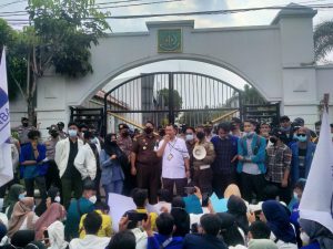 Detik Bhayangkara.com, Kota Serang – Polres Serang Kota Polda Banten kawal aksi unjuk rasa mahasiswa yang tergabung dalam Aliansi BEM Serang Raya di depan Kantor Kejaksaan Tinggi Banten, Rabu (2/05/2021).