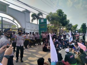 Detik Bhayangkara.com, Kota Serang – Kepolisian Resort Serang Kota Polda Banten beserta jajarannya melakukan pengamanan dan pengawasan Protokol Kesehatan covid-19 aksi unjuk rasa mahasiswa yang tergabung dalam Himpunan Mahasiswa Serang (Hamas) di kantor Kejaksaan Tinggi Banten, Selasa (08/06/2021).