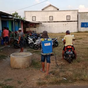 Penyemprotan disinfektan dilakukan di Rt. 02/Rw. 01, dukuh Krajan, desa Mororejo, Kecamatan Mlonggo, Kabupaten Jepara.