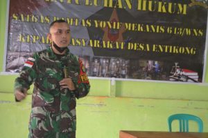 Detik Bhayangkara.com, Kab. Sanggau – Perwira Hukum Satgas Pamtas Yonif Mekanis 643/Wns Kapten Chk Indra Ismana,S.H memberikan penyuluhan hukum kepada masyarakat Desa Entikong, Kabupaten Sanggau bertempat di gedung pertemuan Dusun Sontas, Entikong pada, Minggu (13/06/2021).