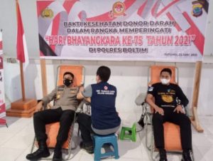 Menyambut HUT Bhayangkara ke-75 Polres Boltim Gelar Donor Darah