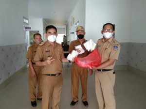 Sekda yang mewakili Bupati Koltim, bersama Asisten I Setda Koltim Arisman SP, menyambangi kantor-kantor OPD satu persatu sambil membagikan masker yang sudah dikemas dalam kantong plastik.