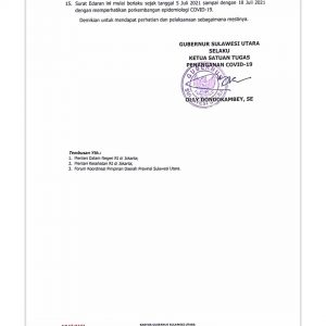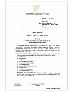 Sesuai Surat Edaran Gubernur Sulut Olly Dondokambey nomor: 440/21.4150/Sekr-Dinkes tentang Antisipasi Peningkatan Kasus Covid-19 di Provinsi Sulawesi Utara, diingatkan beberapa poin.