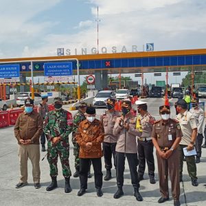 Siang ini, Forkopimda Kabupaten Malang melakukan inspeksi ke exit tol Singosari untuk memantau secara langsung penyekatan.