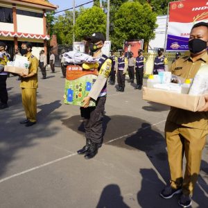 Dalam prosesi penyerahan bantuan yang berlangsung di halaman Mapolres Bojonegoro tersebut diikuti oleh seluruh pejabat utama, Kapolsek-kapolsek diseluruh jajaran, Bhabinkamtibmas termasuk perwakilan Kepala Desa, Selasa (3/8/2021).