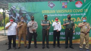 ” jadi kami menyasar kepada semua kalangan, semua golongan dan semua agama. Dan kitapun akan masuk kepelosok-pelosok, karena masih banyak warga masyarakat dipinggiran yang ingin divaksin namun kesulitan mendapatkan akses tersebut. Hampir rata-rata mereka terkendala oleh waktu, kondisi dan situasi. Salah satunya warga masyarakat di Rancamaya, mereka berusaha untuk mendapatkan vaksinasi, namun untuk itu mereka harus jalan kaki agar mendapatkan Vaksinasi. Artinya kita lupa bahwa ada masyarakat pinggiran yang mereka mungkin ingin melakukan vaksinasi namun tidak ada transportasi, tentunya hal itu menjadi pertimbangan kami, untuk memberikan kemudahan bagi mereka. Mungkin bisa dengan cara mendatangi mereka atau jemput bola, ataupun dengan cara menjemput mereka dengan menggunakan kendaraan dan mengarahkan mereka ke sentral-sentral Vaksinasi yang ada,” jelas Danrem.