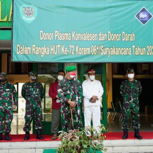 Kemudian Danrem menjelaskan, bahwa pelaksanaan aksi donor plasma konvalesen dan donor darah reguler yang digelar oleh Korem 061/Sk yaitu dalam rangka memperingati HUT Korem 061/Sk ke 72.