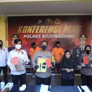 “Kami berhasil mengamankan dua tersangka tindak pidana pencurian disertai kekerasan yang mengakibatkan korban meninggal dunia dengan tempat kejadian perkara (TKP) di Jalan Raya Bojonegoro Babat,” ucap Pandia.