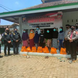 Sesuai dengan salah satu Commander Wish Kapolda Banten Irjen Pol Rudy Heriyanto yaitu Warung Jum’at Barokah, kami Ditpamobvit Polda Banten rutin melakukan kegiatan bakti sosial pada setiap hari Jum’at. Dalam kegiatan tersebut, kami membagikan puluhan paket sembako kepada masyarakat yang terdampak Covid-19.