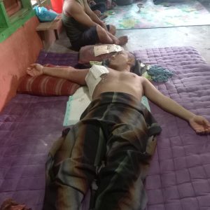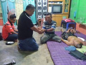 Rianto (29 tahun) warga Desa Sei Pelancang kecamatan Panai Tengah kabupaten Labuhanbatu provinsi Sumatera Utara, terlihat masih terbaring lemas di atas tikar di kediaman kakak kandungnya yang bernama Suijah warga Dusun 1 Teluk Putat.