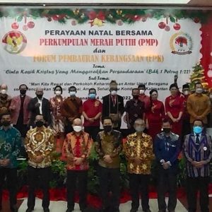 Detik Bhayangkara.com, Pontianak – Perkumpulan Merah Putih (PMP) dan Forum Pembauran Kebangsaan (FPK) Kalbar menggelar Perayaan Natal bersama dengan seluruh elemen masyarakat, di Ballroom Hotel Kapuas Palace Jalan Budi Karya Pontianak, Jumat malam (14/01 2022).
