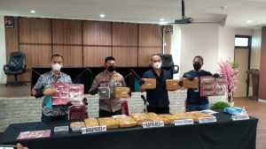 Press Conference dipimpin oleh Kapolres Tangsel, AKBP Sarly Sollu,.SIK,.MH didampingi oleh Kasat Narkoba Polres Tangsel AKP Amantha Wijaya Kusuma SH, Kanit 1 Res Narkoba Polres Tangsel Iptu Eko Nopendi, SH.,MH, KBO Res Narkoba Polres Tangsel Ipda Abdul Rasyid, Panit Ipda Irwan, Kabag Humas Polres Tangsel Akp Tarmui, serta Tim 1 Satres Narkoba Polres Tangsel.