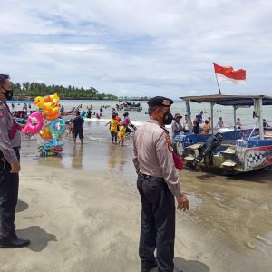 Edy Sumardi juga menyampaikan, “Dalam patrolinya, personel membagikan masker dan melakukan komunikasi kepada pengunjung dan pengelola Pantai Anyer untuk memberikan imbauan agar tetap mematuhi prokes dan wajib pakai masker serta waspada terhadap cuaca yang kurang menentu.