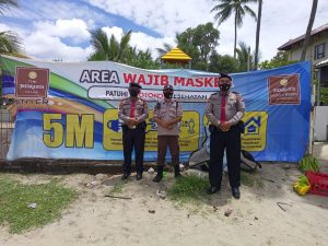 Edy Sumardi juga menyampaikan, “Dalam patrolinya, personel membagikan masker dan melakukan komunikasi kepada pengunjung dan pengelola Pantai Anyer untuk memberikan imbauan agar tetap mematuhi prokes dan wajib pakai masker serta waspada terhadap cuaca yang kurang menentu.