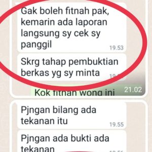 “Saya panggil…sekarang pembuktian berkas yang saya minta. Panjenengan bilang ada tekanan itu apa panjenengan ada bukti…?,” tulis Samsul Hadi.