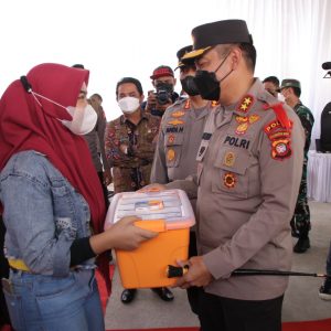 Serta malaksanakan peninjuan Vaksinasi Presisi dilanjutkan dengan penyerahan Dorprize kepada anak anak yang telah melaksanakan Vaksinasi dan penyerahan Bantuan Sosial kepada masyarakat yang telah melaksanakan Vaksinasi. (A. Rakhman Hudri)