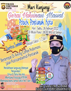 Kapolsek Pontianak Kota, AKP Sulastri mengatakan, vaksinasi digelar guna mempercepat cakupan vaksinasi khusunya di wilayah Kota Pontianak.
