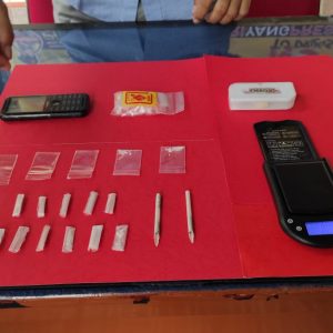tiga belas (13) paket plastik bening berklip yang berisi diduga narkotika jenis shabu, tiga (3) buah kantong plastik bening berklip, satu (1) buah kotak bertuliskan KOBBLE warna putih, satu (1) bundel plastik bening berklip, dua (2) buah sendok sabu yang terbuat dari pipet plastik, satu (1) unit timbangan digital bertuliskan POCKET SCALE warna hitam, satu(1) unit HP Nokia model RM – 1035 berikut simcard. ( Peru Artiadi )