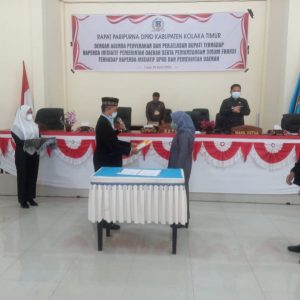 Penjabat (Pj) Bupati Kolaka Timur (Koltim) Ir. H. Sulwan Aboenawas, M.Si Melalui Asisten I bidang pemerintahan menyerahkan atas dua rancangan Peraturan Daerah (Perda) Kabupaten Kolaka Timur.