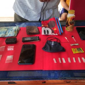 “Pada saat penangkapan serta pengeledahan tersebut, petugas berhasil menemukan barang bukti berupa 5 (lima) paket plastik bening berklip yang berisi diduga narkotika jenis sabu di dalam 1 (satu) buah kotak plastik bertuliskan BRT warna coklat,” jelasnya.