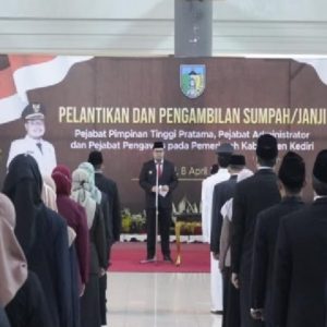 Detik Bhayangkara.com, Kediri – Bupati Kediri H. Hanindhito Himawan Pramana,S.H melantik pejabat pemerintah kabupaten (Pemkab) Kediri, di Convention Hall Simpang Lima Gumul (SLG), Jum’at (8/4/2022).