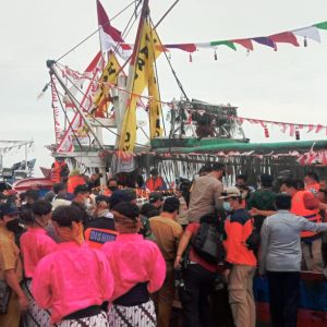 dalam pelaksanaan larungan tersebut tidak lupa tetap melakukan prokes. ( Sunarso ALMIJ)