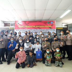 Detik Bhayangkara.com, Semarang – Dalam rangka menyambut HUT Bhayangkara ke 76 Tahun 2022, Polda Jateng melalui Biddokkes menggelar Bakti Kesehatan (Baktikes) berbentuk Khitanan Massal yang dilaksanakan di RS Bhayangkara Tk II Awaloeddin Djamin, Kota Semarang, Kamis (19/5/2022).
