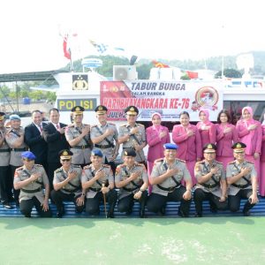 Tabur bunga dan larung laut ini merupakan rangkaian kegiatan dalam menyambut Hari Bhayangkara ke-76 yang dipimpin langsung Kapolda Banten Irjen Pol Prof. Dr. Rudy Heriyanto bersama Ketua Bhayangkari Daerah Banten Ny. Wie Rudy dan diikuti Pejabat Utama Polda Banten beserta pengurus Bhayangkari Daerah Banten.