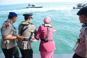 Pasca melakukan tabur bunga di Dermaga Sultan Ageng Tirtayasa, Kapolda bersama rombongan melaksanakan larung laut di Perairan Merak menggunakan kapal Ditpolairud.