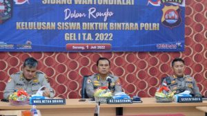 Detik Bhayangkara.com, Banten – Polda Banten gelar sidang Dewan Penyantun Pendidikan dan Pelatihan (Wandiklat) Siswa Diktuk Bintara Polri Gelombang I tahun 2022 Sekolah Polisi Negara (SPN) Polda Banten di ruang Crisis Center Polda Banten pada, Jumat (01/07) sekitar 14.00 Wib.