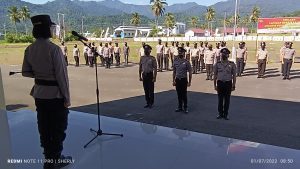 Kapolres Bolaang Mongondow AKBP Dr. Nova Irone Surentu, SH, MH menerima laporan kenaikan pangkat para personel tersebut dalam suatu upacara bertempat di Halaman Mapolres Bolmong di Lolak Jumat, (1 Juli 2022).
