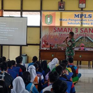 Detik Bhayangkara.com, Sanggau – Dalam rangka menumbuhkan semangat terhadap nilai – nilai kebangsaan, dalam ikut serta mengembangkan sikap patriotisme dan nasionalisme, Pasiter Kodim 1204/Sanggau Kapten Inf Eko Prasetyo Widodo memberikan penyuluhan kepada siswa siswi SMA Negeri 3 Sanggau pada kegiatan Masa Perkenalan Lingkungan Sekolah (MPLS) yang diikuti oleh 247 siswa, Selasa (12/07/2022).