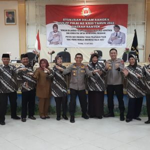 Acara yang diikuti oleh Ketua Persatuan Purnawirawan (PP) Polri Daerah Banten Kombes Pol Purnawirawan Hj. Djasmarni dan pengurus serta dihadiri oleh para anggota PP Polri ini, bertemakan dengan dilandasi semangat tetap setia, PP Polri selalu komitmen dan konsisten untuk mendukung program Presisi dan Dinamika tugas pelayanan Polri yang prima menuju Indonesia maju 2025.